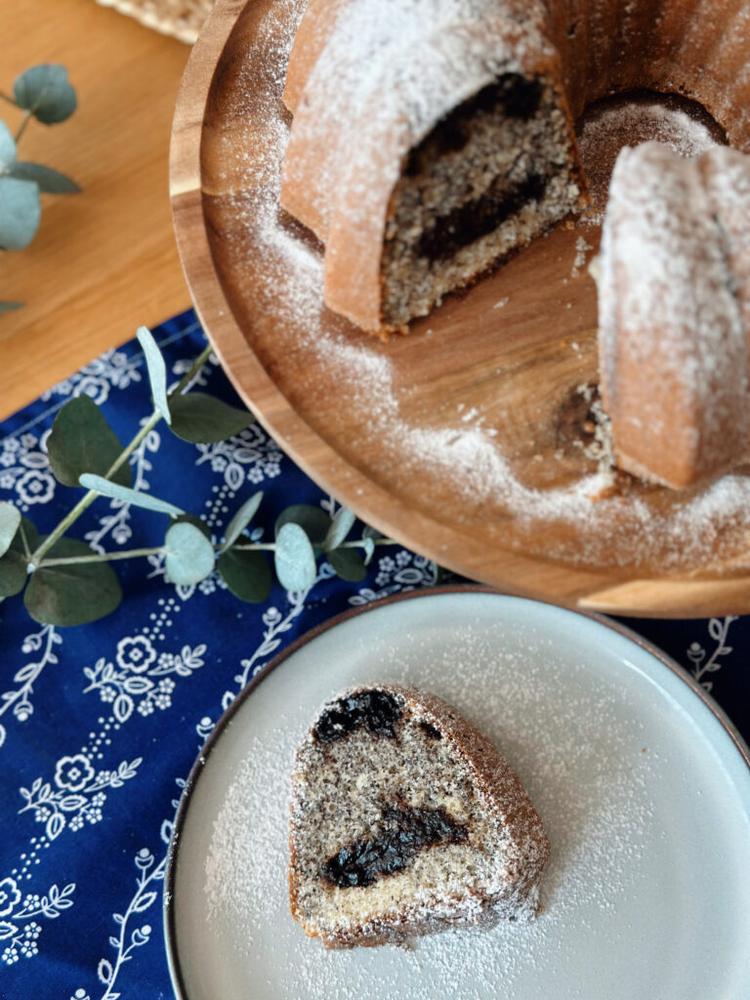 Vejce pokojové teploty vyšleháme s cukrem a špetkou soli do pěny. Opatrně vmícháme smetanu (může být předem ušlehaná do polotuha, tento krok ale můžete klidně vynechat). Do směsi zlehka vmícháme prosátou mouku a PDP – ideálně tak, aby pěna neztratila objem (směs pouze zlehka podebíráme, nemícháme energicky). Nakonec stejným způsobem vmícháme mák a přelejeme směs do formy.Povidla naředíme rumem, dala jsem cca dvě lžíce. Protože jsem měla povidla dost kyselá, přidala jsem vanilkový třtinový cukr. Můžete zkusit přidat i např. perníkové koření. Já jsem dávala rum, ve kterém mám naložený badyán, hřebíček, skořici a vanilkový lusk. Povidla přidáváme jako poslední krok v tenké vrstvě (např. zdobícím sáčkem), aby nepropadla úplně dolů (což se mi taky stalo, ale na chuti to nic neměnilo, mělo to jen estetický efekt 😄).Bábovku pečeme cca 45 minut – test špejlí.